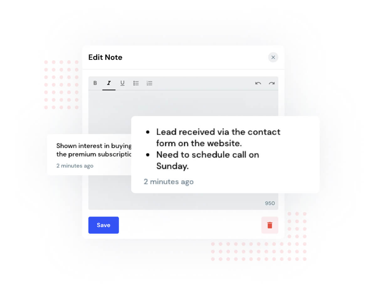 Several things go through your mind while talking to a lead on WhatsApp. The good thing is you don’t need to remember all the information, as you can simply take down and save notes for future use.